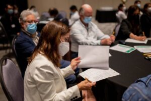 En esta primera instancia de encuentro presencial que reunió a más de cien personas entre investigadores, empresarios, gremios y autoridades, se trató el tema de la Economía Circular y cómo se aborda desde distintos ámbitos, a través de mesas de trabajo en que cada uno de sus integrantes identificó temáticas a resolver, como, por ejemplo, reciclaje de plástico, basura electrónica, cuidado de agua y reforzamiento y creación de unidades de innovación al interior de la empresa.